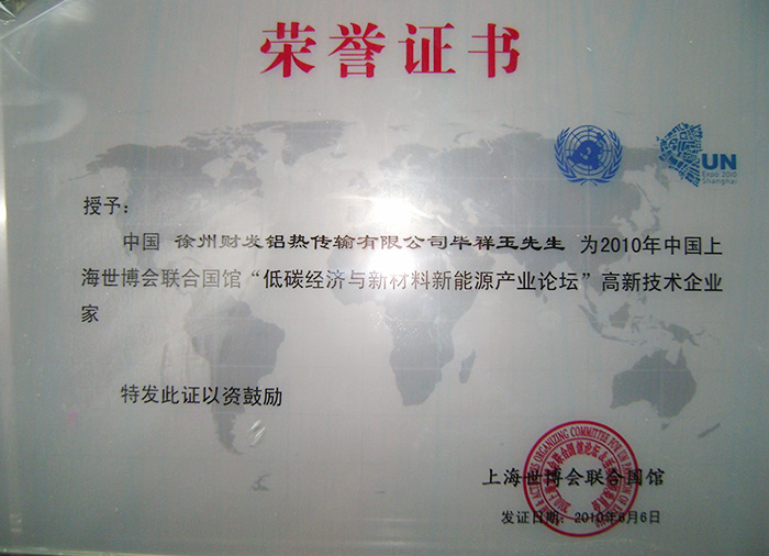 Honorary Certificate of Shanghai World Expo