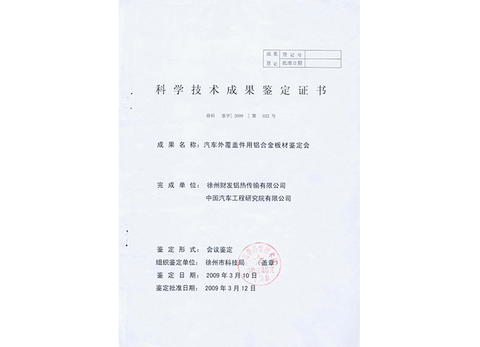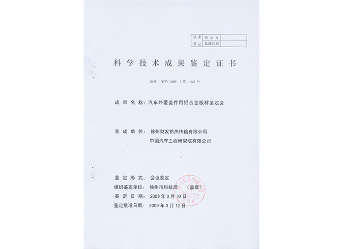 Certificate of Accreditation of Scientific and Technological Achievements